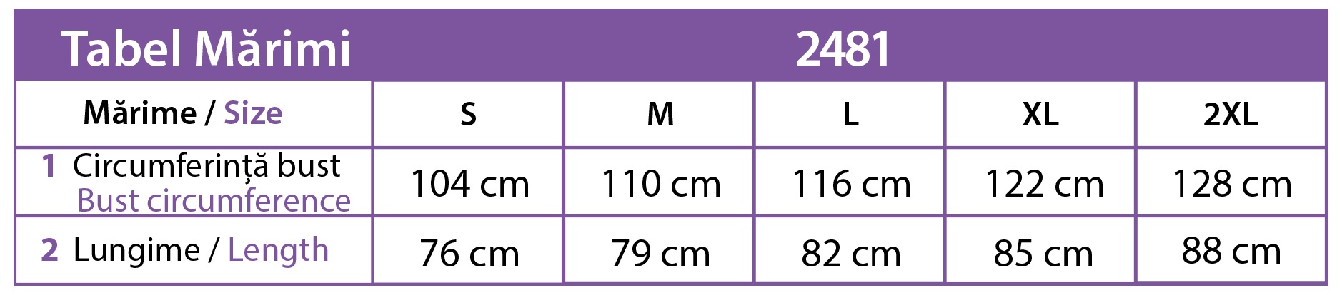 • 2XL: Дължина 88см., Бюст 128см