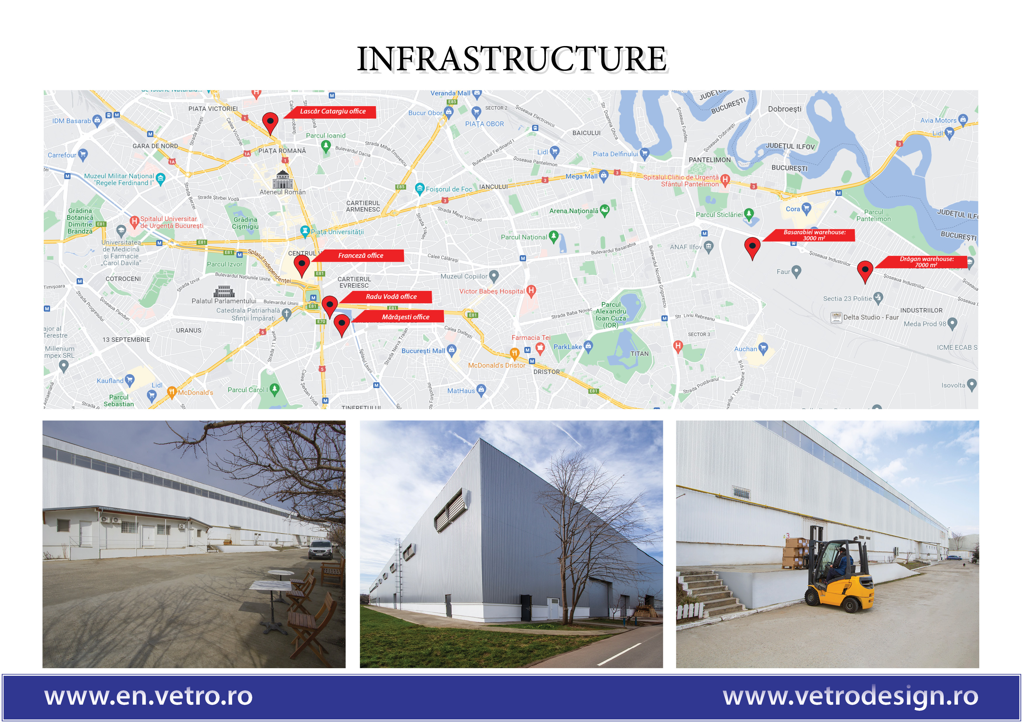 Като най-голям склад за медицински и хигиенни еднократни продукти в страната, Ветро Дизайн разполага с повече от 10 000 квадратни метра складови помещения, офиси и производствени мощности със специализирани възможности за внос и дистрибуция. Професионален екип предлага ефективни услуги, бърза и постоянна дистрибуция на всички клиенти, както на територията на Европейския съюз, така и по целия свят.