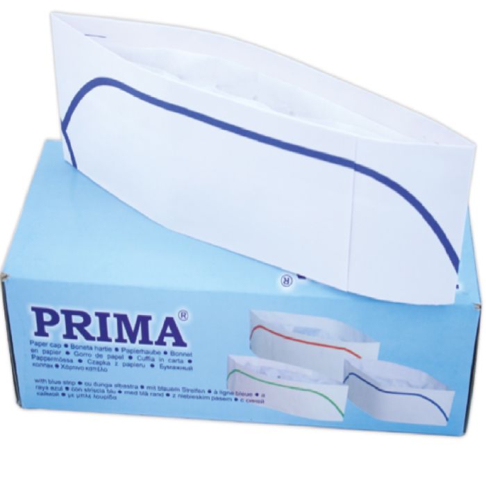 Boneta bucatar din hartie PRIMA, de culoare alba cu dunga albastra, este solutia ideala pentru protectia capului in industria alimentara. Cu dimensiuni de 28 x 8.2 cm, aceasta boneta de unica folosinta este conceputa pentru a asigura un nivel ridicat de igiena in bucatarii profesionale, restaurante, unitati de procesare a alimentelor sau evenimente de catering.