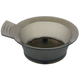 Bol fumuriu cu maner, de tip profesional, cu baza antiderapanta care previne alunecarea pe suprafata de lucru. Se utilizeaza in saloanele de infrumusetare pentru mixarea vopselelor. Diametrul 14 cm.