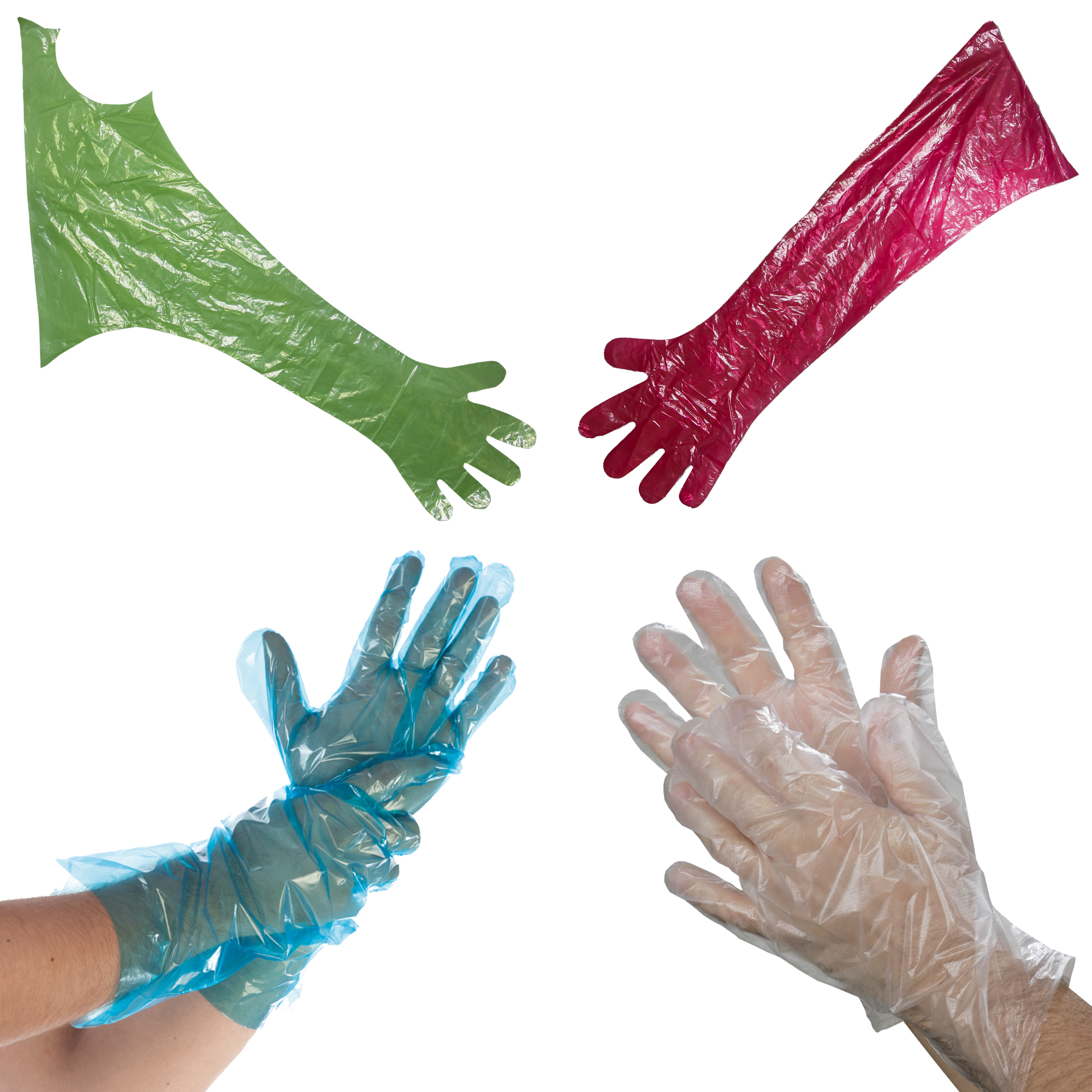 0267-100_869 Manusi din plastic HDPE, transparente, 100buc, de unica folosinta, PRIMA, diverse marimi