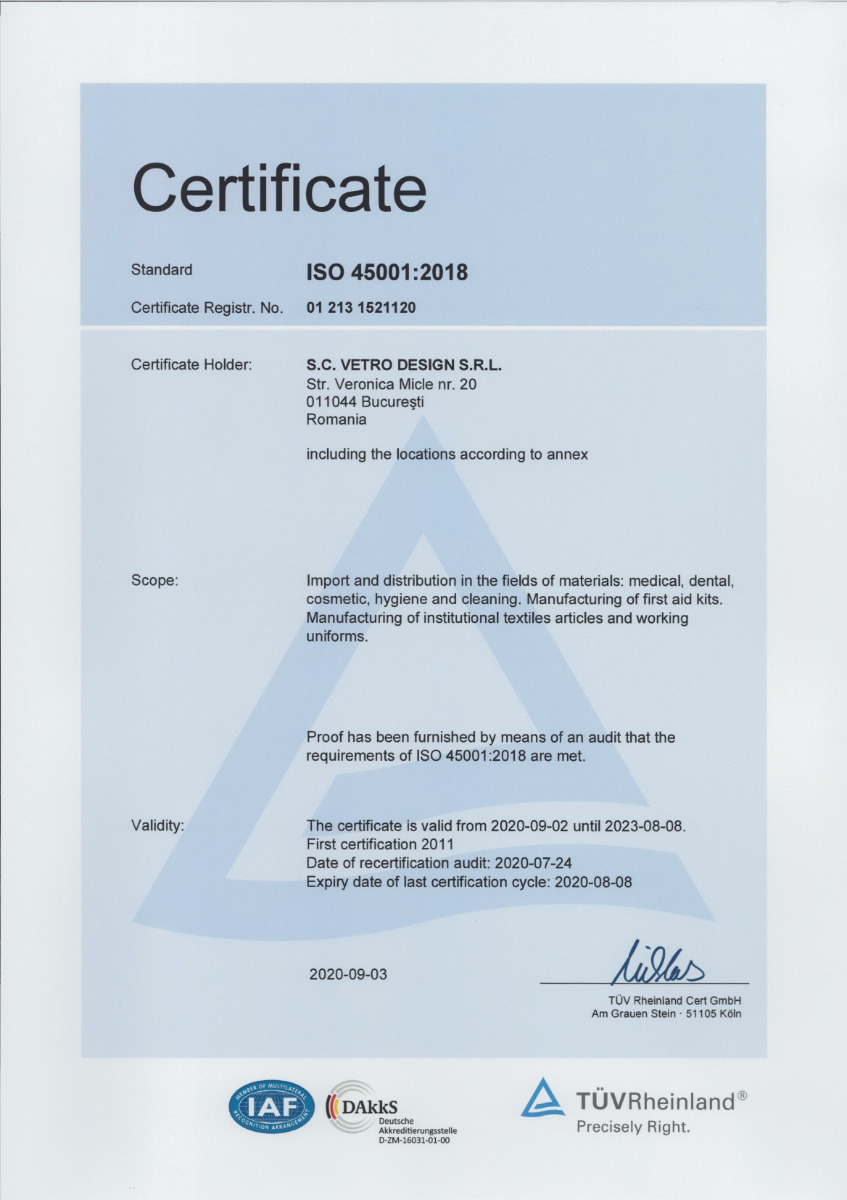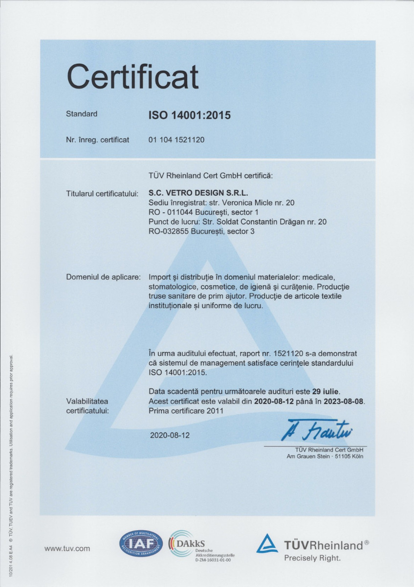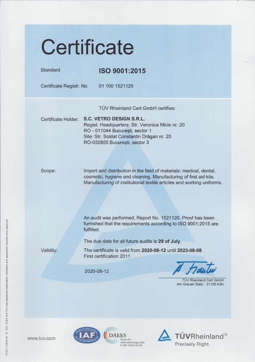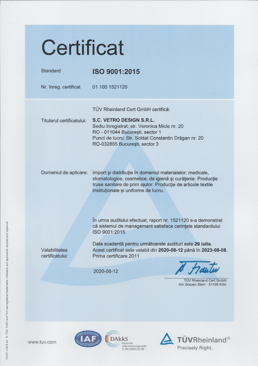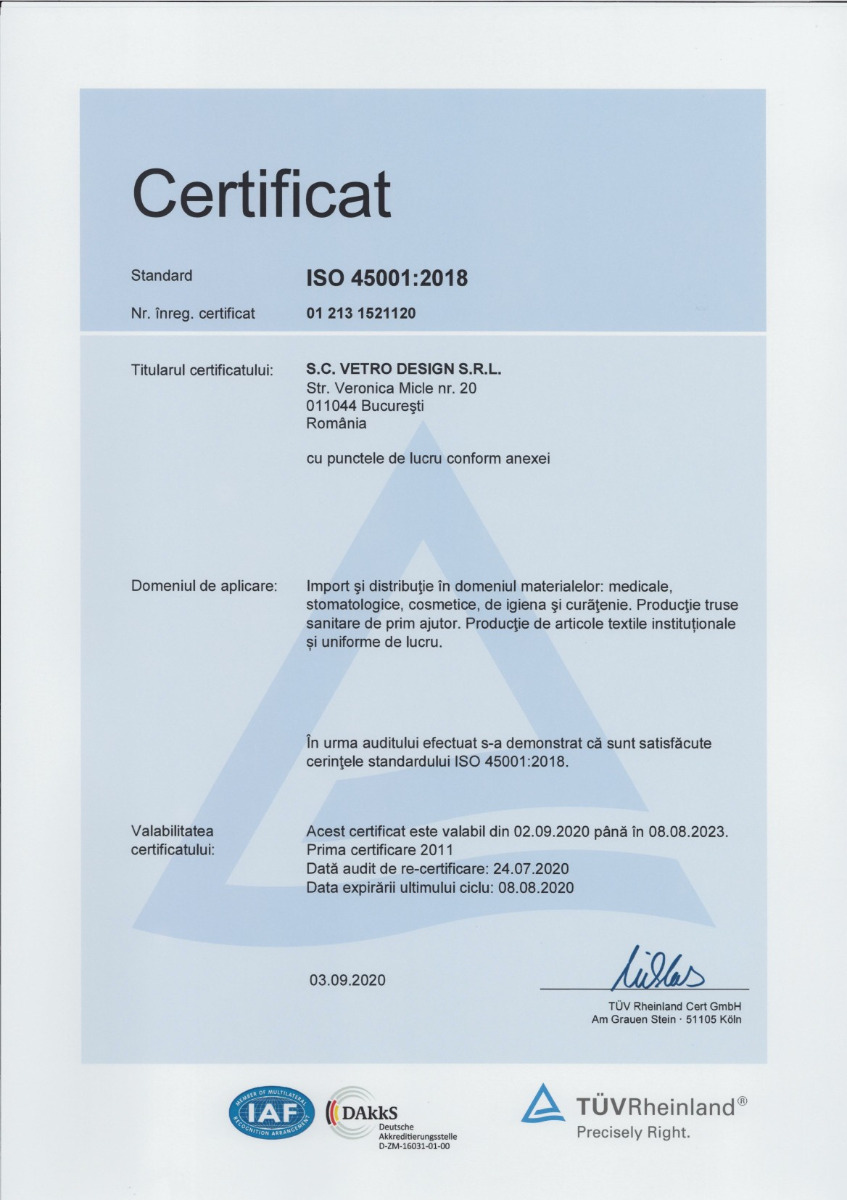 Vetro Design ist ein Unternehmen mit über 29 Jahren Erfahrung und mehr als 60 Mitarbeitern, das ausschließlich mit rumänischem Kapital tätig ist. Unser Unternehmen gehört zu den wichtigsten Importeuren, Distributoren und Exporteuren von medizinischen Geräten und Laborprodukten, Dental- und Veterinärprodukten, professionellen Kosmetikprodukten für die Schönheitsindustrie sowie Reinigungs- und Hygieneprodukten in Rumänien.