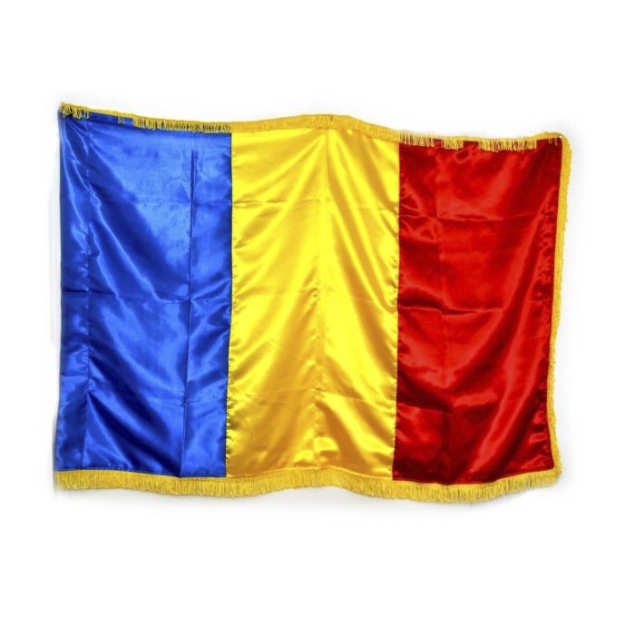 Imbunatatiti decorul interior al spatiului dumneavoastra cu drapelul Romania cu franjuri, confectionat din satin de inalta calitate si avand dimensiunea de 90x135cm. Acest drapel elegant este ideal pentru evenimente oficiale, sarbatori nationale sau pentru a adauga un strop de patriotism in interiorul casei sau biroului dumneavoastra.
