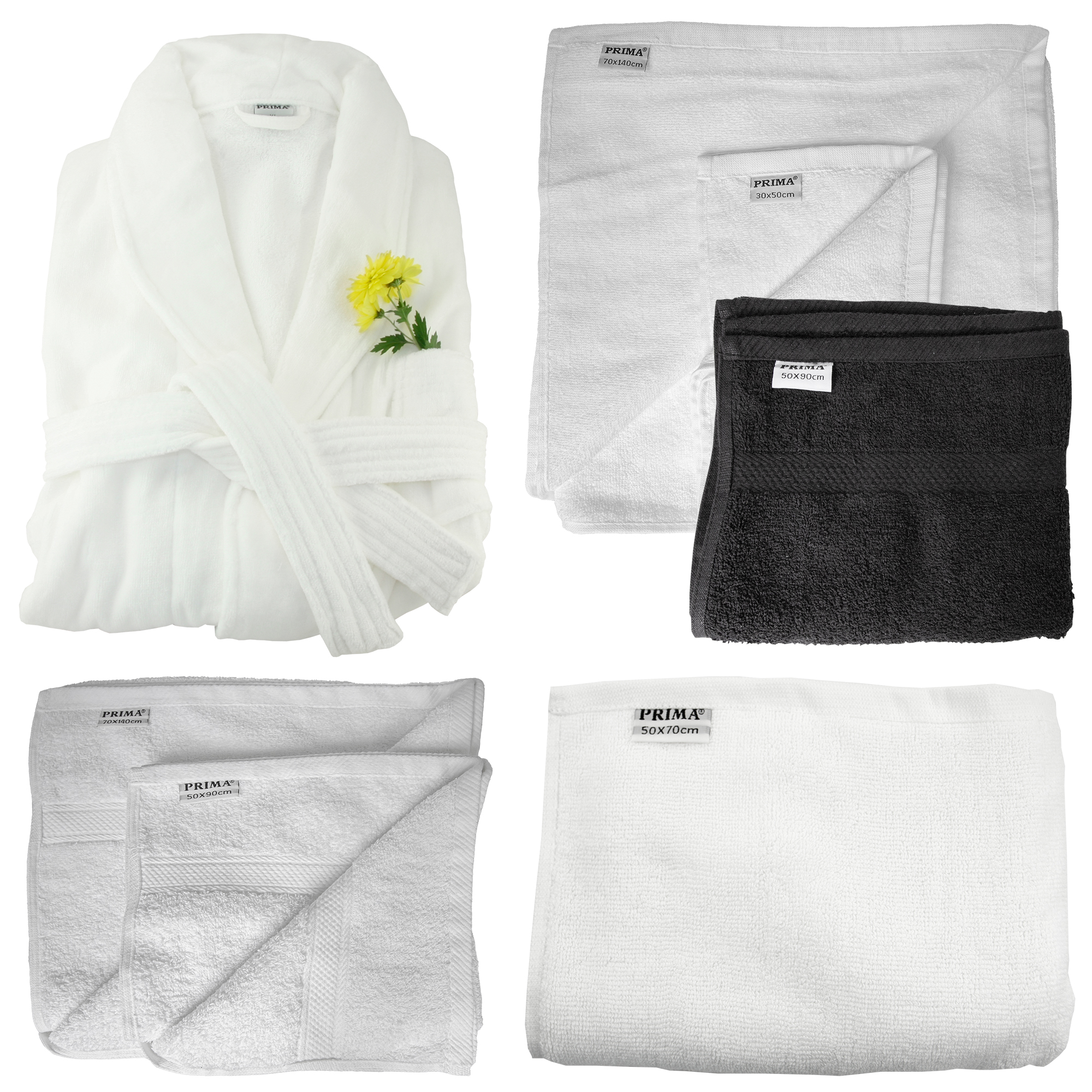 1352-70x140-6 Set 6 prosoape baie, PRIMA, bumbac 100%, 70x140cm, 600g/m2, albe