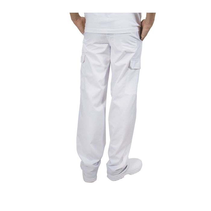 1486-T007-XS Pantaloni bucatar barbati MARK Premium, elastic in talie, 5 buzunare, albi, XS