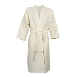 2087 Halat de baie tip Fagure Kimono, din fire rasucite din bumbac netratat, crem