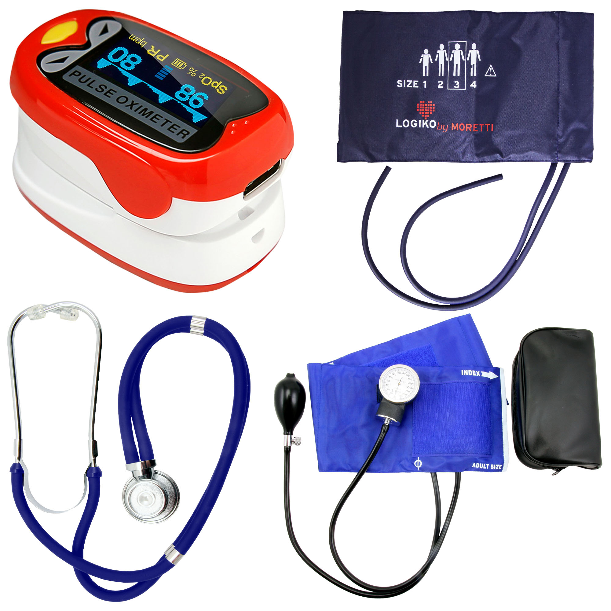 Aceasta categorie este impartita in alte trei subcategorii: Control temperature, Control tensiune sip uls si Control glicemie. Astfel, gama completa de aparate pentru controlul sanatatii profesionale contine: stetoscop Dual Head, stetoscop Sprague-Rappaport cu 2 diaframe, tensiometru electronic si manual, manseta pentru tensiometru, pulsoximetru de adulti sau de copii, glucometru si teste de glicemie, termometre digitale standard, cu infrarosu sau cu senzori fara atingere, Unitate HC Alfatrac pentru elongatii lombare si cervicale, support pentru elongatiile cervicale etc.