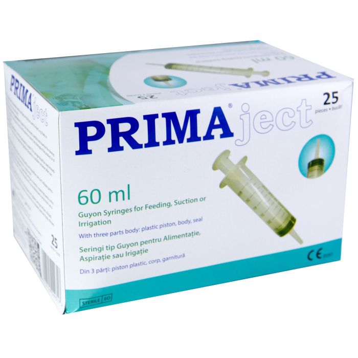 Seringi Luer Lock 60ml, PRIMA, cu ac 18G, 25 bucati