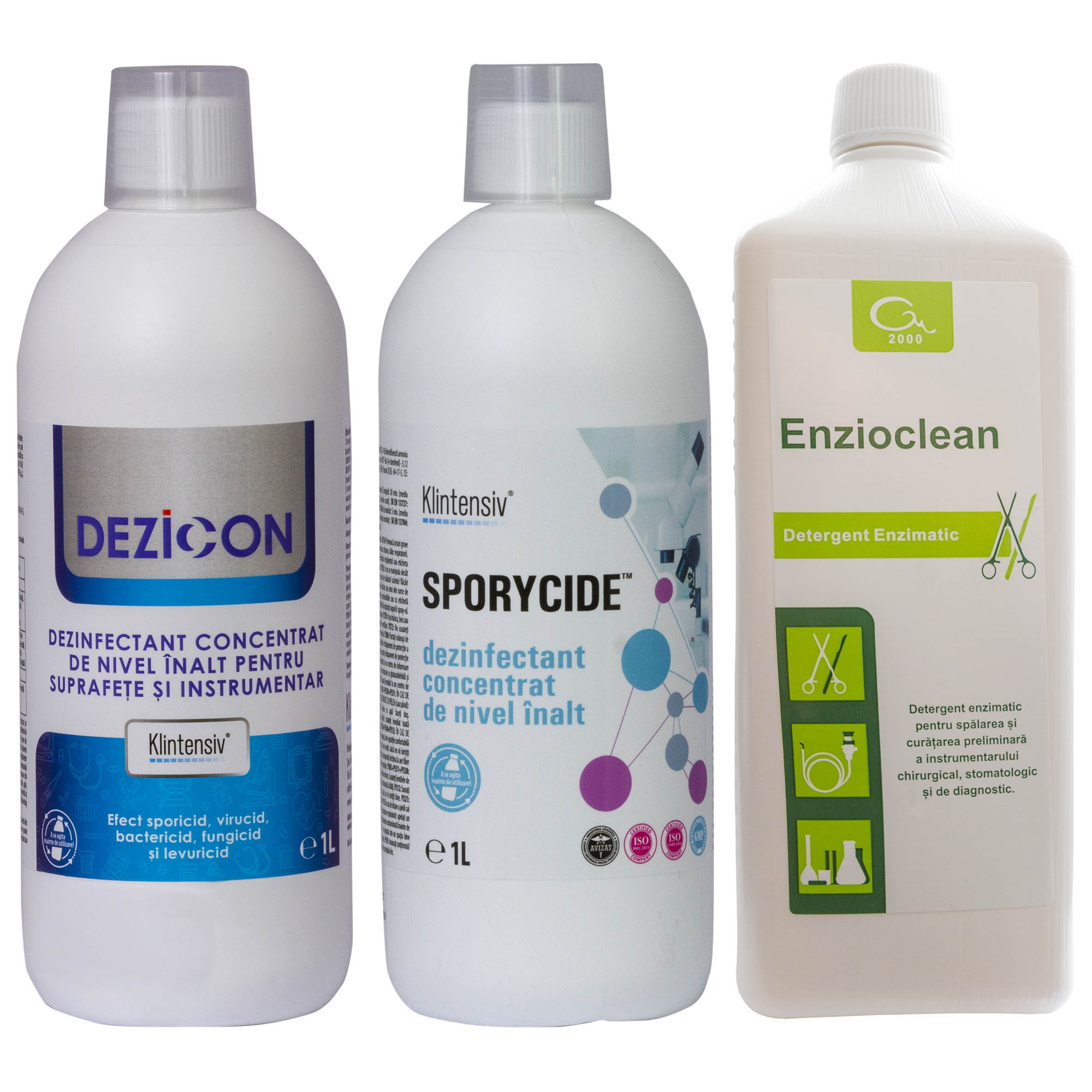 Produs pentru dezinfecția și sterilizarea instrumentarului medical, chirurgical, stomatologic și de diagnostic, prin imersie la temperatură ambiantă. Dezinfectează suprafețele prin ștergere (pereți și pardoseli din săli de operație, cabinete medicale).