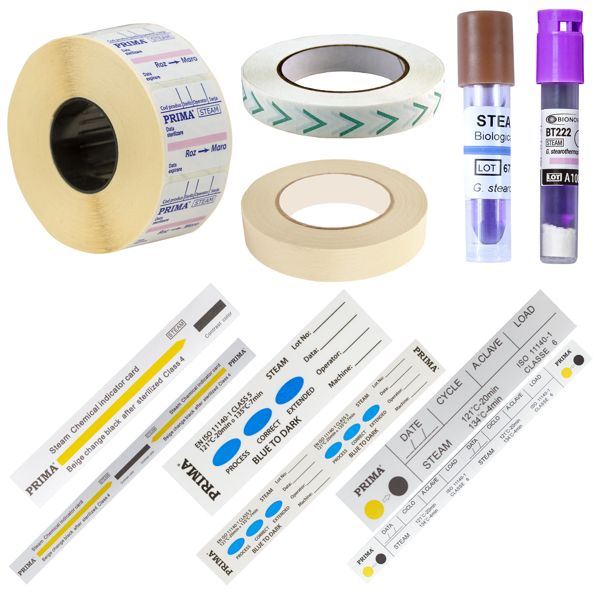 Aceasta subcategorie cuprinde atat indicatori de sterilizare precum: indicatori sterilizare formaldehida; indicatori sterilizare aburi - Autoclav; indicatori chimici strip sau strip dublu de diferite clase; indicatori sterilizare caldura uscata - Pupinel; indicatori biologici Geobacillus Stearothermophilus abur - Bionova, cat si alte accesorii necesare sterilizarii, precum aparatele de sigilat pungi pentru sterilizare medicala.