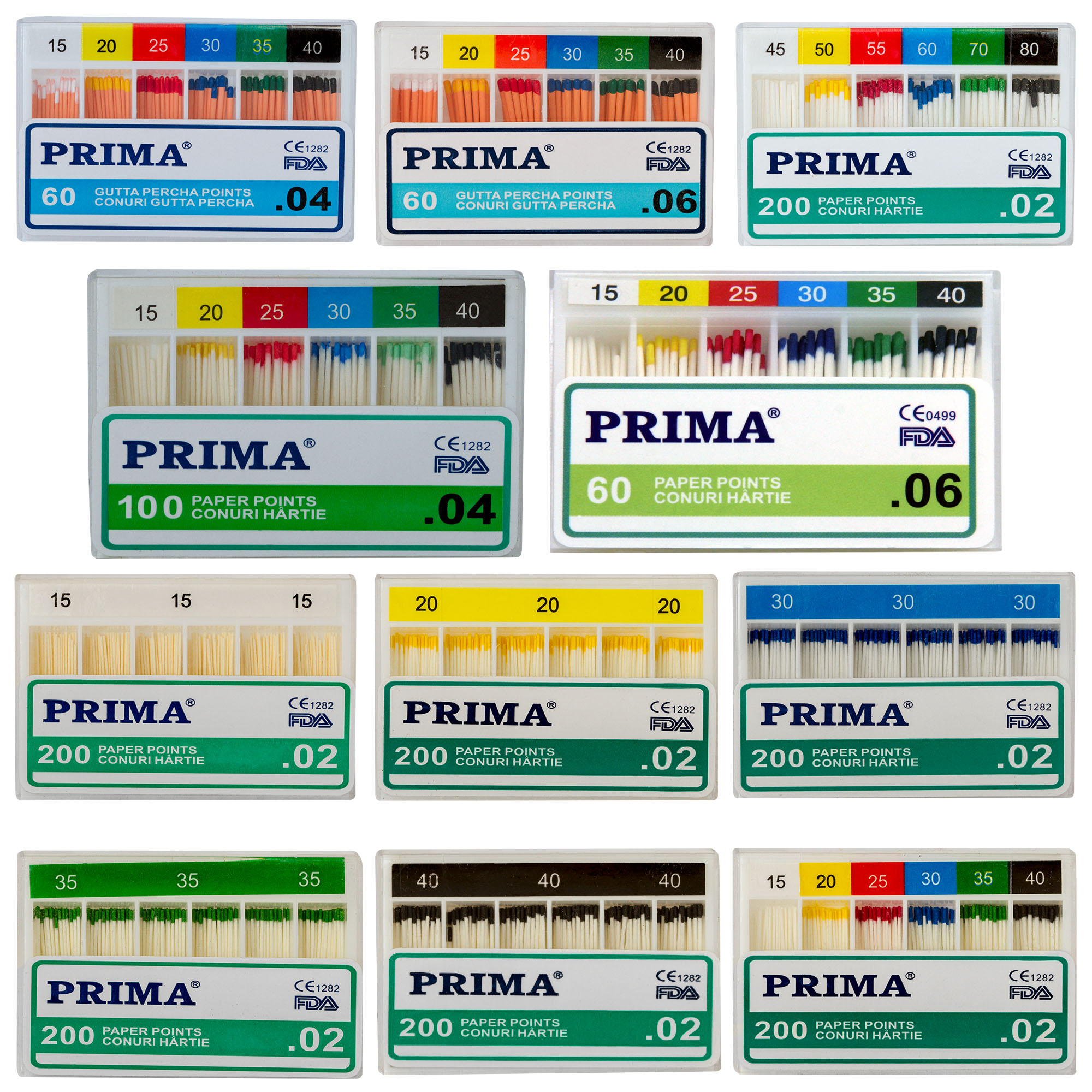 Gama variata de conuri de hartie sau Gutta Percha asortate sau pe marimi, conicitate mica sau mare.