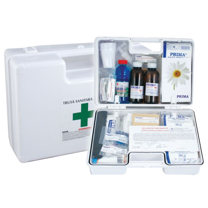 Important: Trusa sanitara PRIMA este indispensabila in orice institutie conform reglementarilor legale in vigoare. Aceasta asigura disponibilitatea echipamentului necesar pentru acordarea primului ajutor in cazul accidentelor, fiind completa si usor de utilizat.