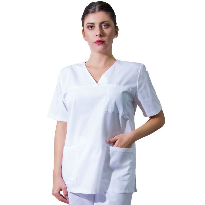 - Bluza Clasica, cu maneca scurta, usor cambrata pe talie. Are un design elegant si confortabil, opera libertate de miscare datorita crapaturilor laterale si este prevazuta cu gule in forma de "V"