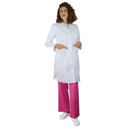 - Halat cu capse - Un halat cu maneca scurta si o croiala dreapta. Este prevazut cu anchior in forma de V petrecut, 3 buzunare aplicate cu crapaturi laterale pentru libertate de miscare. Acest halat este modern si feminin, cu o inchidere cu capse.